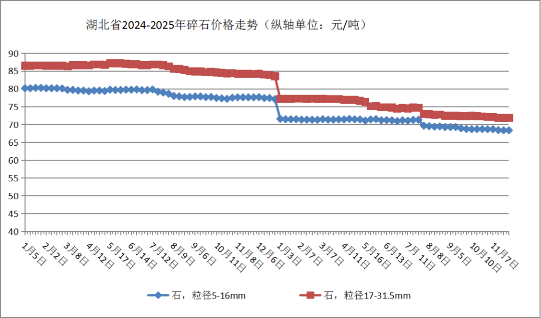 声明:本订阅号部门文章材料和素材来历收集,前往搜狐,同比别离下降9.27%、14.74%。11月份湖北省建材市场运转总体平稳。同比别离下降11.77%、14.65%。日前湖北省对11月份次要建材产物价钱环境进行持续监测。相关企业亲近关心市场动态,砂石类产物价钱同比仍处于低位,监测数据显示:11月份!碎石(粒径5-16mm)、碎石(粒径17-31.5mm)全省均价别离为68.44元/吨、71.90元/吨。